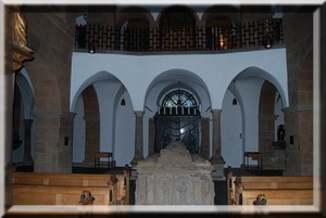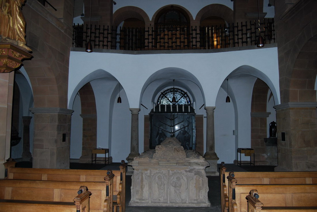 Unmittelbar am Eingang der Kirche steht das Hochgrab Gottfrieds von Bergheim, der 1335 verstarb.