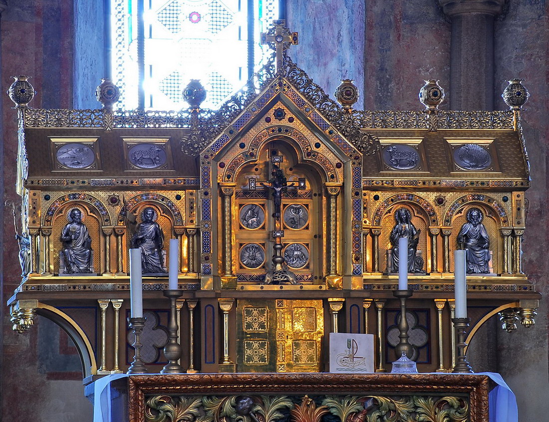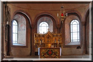 12 Stufen höher befindet sich der Altar mit dem Chorgestühl für die Mönche, deren Umwandlung im 11. Jahrhundert zum Chorherrenstift vollzogen wurde - daher auch der Begriff "Stiftskirche".