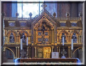 Auch die Altarplatte besteht aus Kalksinter und stammt aus einem Sammelbecken dieser Wasserleitungen.
