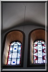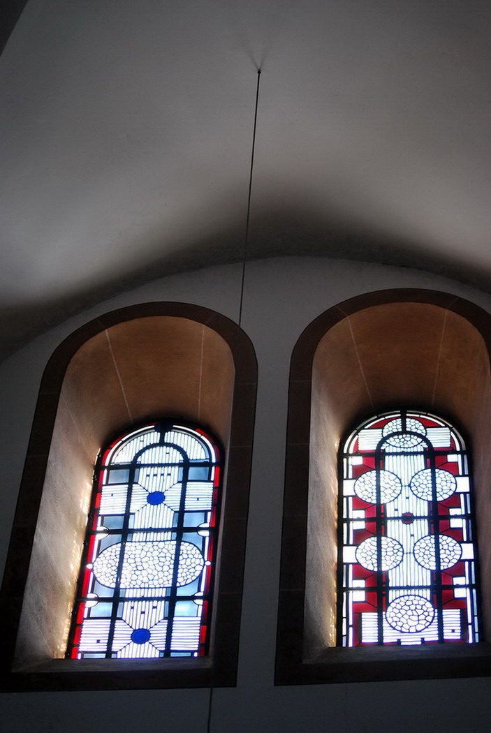 Der Kölner Künstler Franz Pauly schuf in den Jahren 1964 bis 1968 die Kirchenfenster und zeigen, wie der Kosmos das Lob Gottes verkündet.