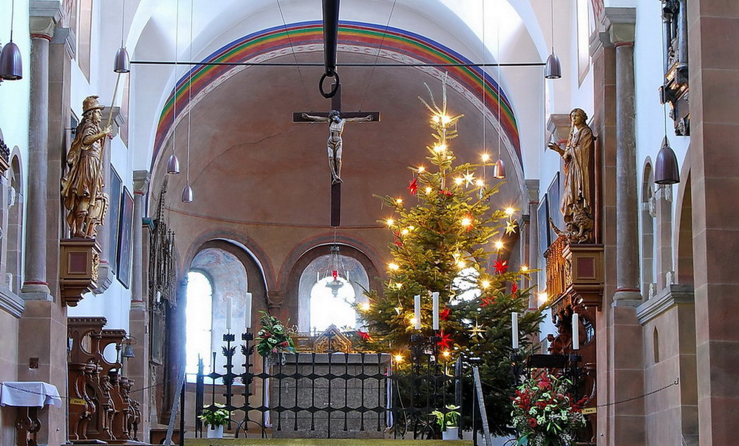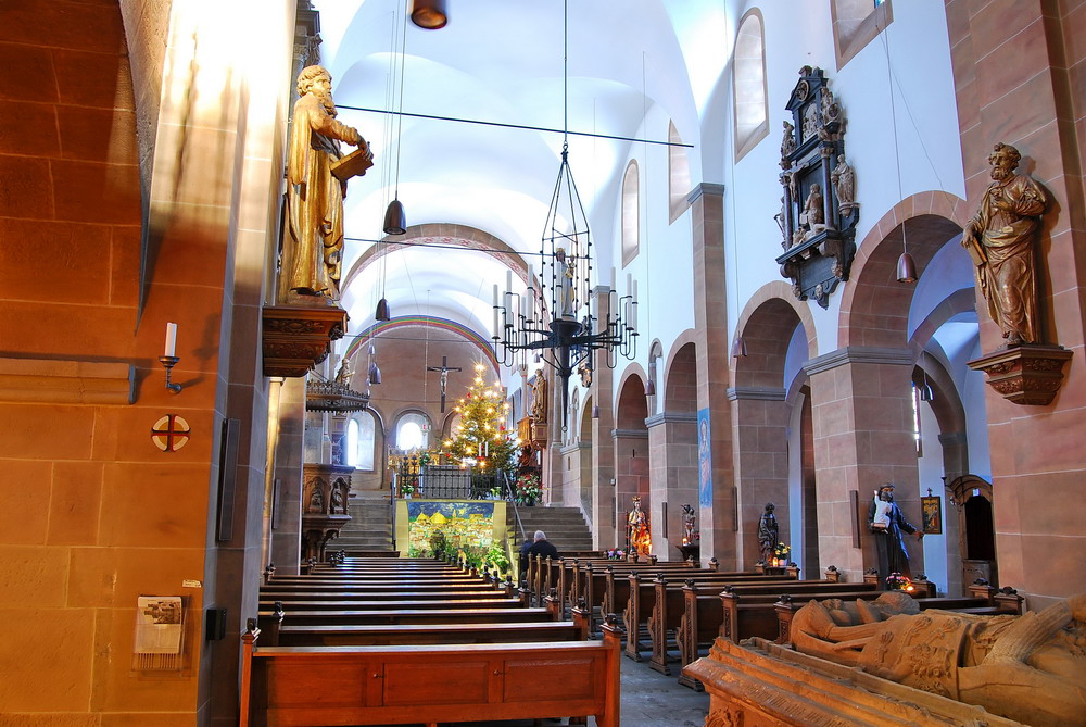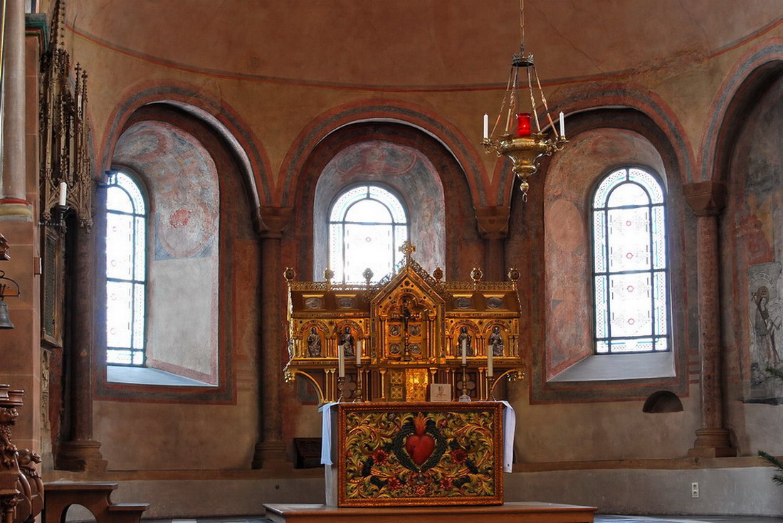 Im Inneren der Kirche sehen wir die Königshalle für Christus, dem König mit den Umgangswegen in den beiden Seitenschiffen.