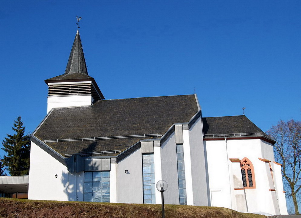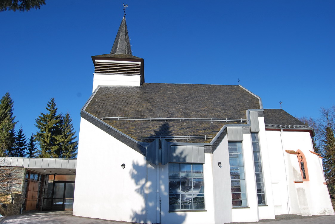 Lediglich der Chor aus dem 16. Jahrhundert, als auch der Turm aus dem 12. Jahrhundert blieben erhalten. Dank der emsigen Arbeit vieler Berker Bewohner und Handwerker konnten schon bald in den Trümmern der alten Kirche wieder Messen abgehalten werden. Nach Plänen von Fritz Jäncke und Erich Heyne aus Aachen wurde die neue Kirche bis zum Herbst 1973 vollendet, während die Bildhauerarbeiten von Eberhard Linke aus Saulheim durchgeführt wurden.