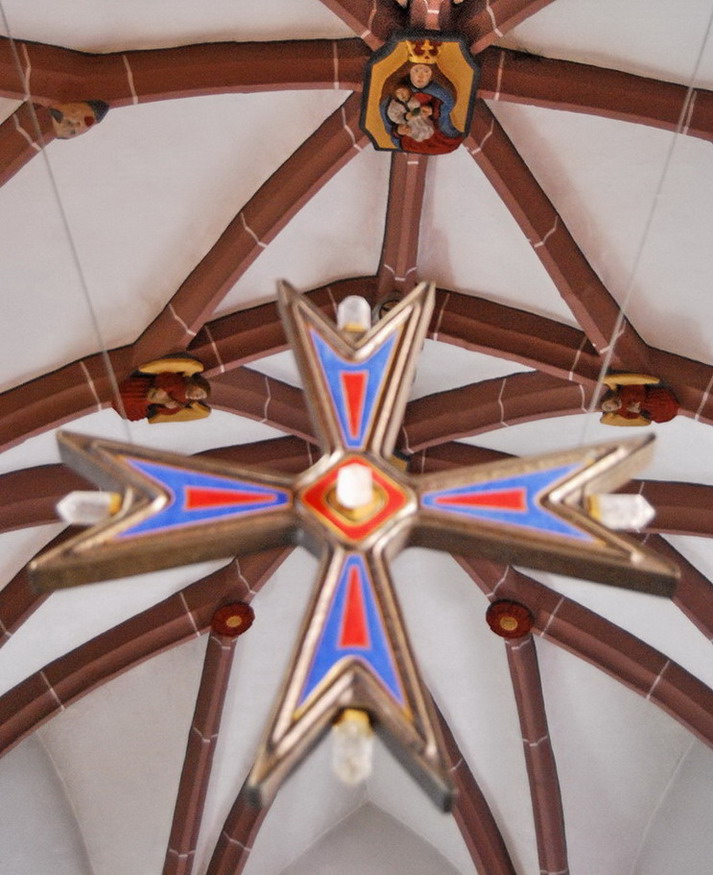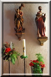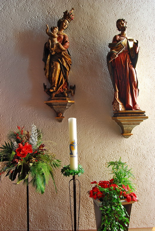 Zwei Statuen, die von Berker Einwohnern gestiftet wurden, zeigen die Muttergottes mit Jesuskind auf einer Mondsichel stehend, sowie den Hl. Josef mit einer Kirche zu seinen Füßen. Der Hl. Josef ist seit 1870 Schutzpatron aller Kirchen.
