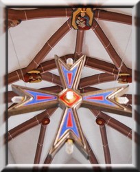 Ebenfalls mit Bergkristallen verziert sind der auf einer freistehenden Säule befindliche Tabernakel, das Altarkreuz sowie der Taufstein.