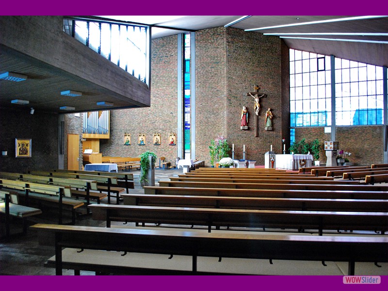 Die heutige moderne Kirche, die über 600 Gläubigen Platz bietet, wurde komplett ohne Pfeiler konstruiert, sodass von jedem Platz aus ein freier Blick auf den Altar erfolgt.