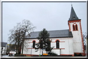 Am 21. Mai 1844 war die Grundsteinlegung der heutigen Kirche, deren feierliche Weihe 1851 durch Kardinal Johann von Geißel vorgenommen wurde. Zu der Zeit maß die Kirche in der Länge 24m und in der Breite 15m. Sie wurde im klassizistischen Stil nach Plänen von Richard Castenholz aus Büllingen gebaut.