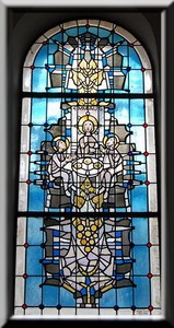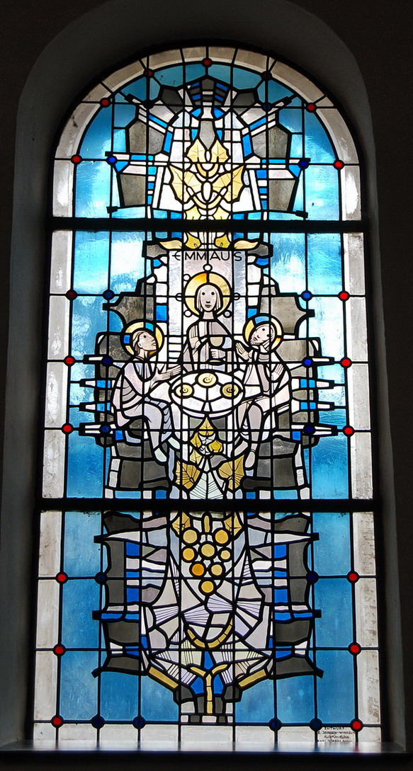 Modern und doch sehr ausdrucksvoll sind die Buntglasfenster im Chor der Dahlemer Kirche, deren Entwurf vom 1992 verstorbenen Künstler Ernst Jansen-Winkeln stammen und von Karl Jörres aus Bonn ausgeführt wurden. Unter anderem zeigen sie den auferstandenen Christus mit zwei Jüngern in Emmaus, als sie zu Tisch saßen und ihn erkannten.