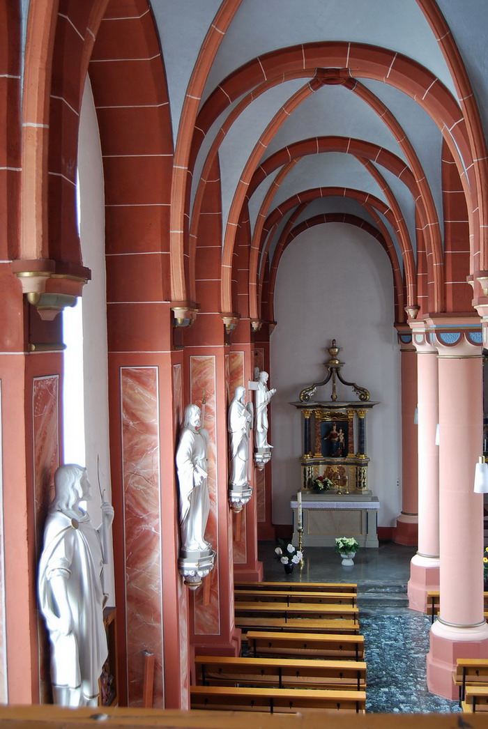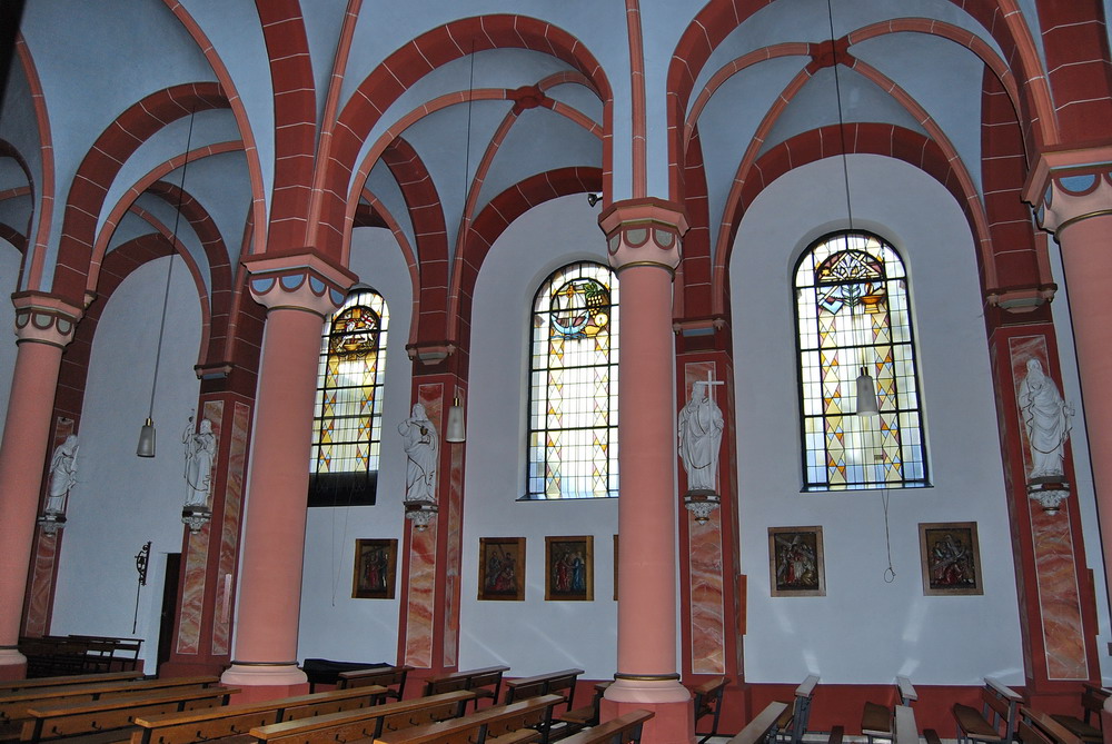 In den nachfolgenden Jahrzehnten erfuhr die Kirche viele Veränderungen und Umbauten und man bemühte sich, das Innere der Kirche der Würde eines solchen Gotteshauses gerecht zu werden. So wurde durch den damaligen Pfarrer Loewing veranlaßt, das Kircheninnere auszumalen, die drei Altäre, die noch aus der alten Kirche stammten mit einem neuen Anstrich zu versehen und zu vergolden. Die zwölf Apostelstatuen, die die Wände noch heute zieren, wurden 1868 errichtet. Die ehemals flache Decke erhielt 1907 ein Gewölbe aus Schwemmstein, das auf Säulen aus rotem Sandstein ruht. An der Südostseite wurde 1908 eine neue Sakristei gebaut und 1909 erfolgte die Anschaffung neuer Bänke.