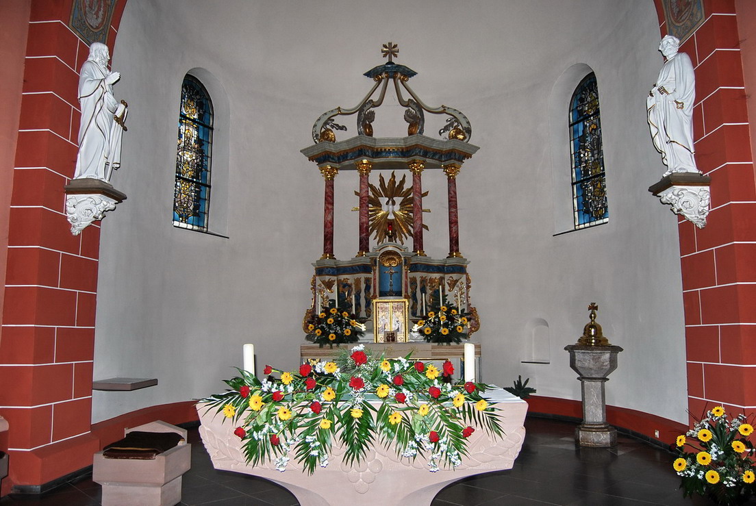 Rechts befindet sich der Josefsaltar und links der Nikolausaltar.