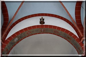 Die sehr plastisch dargestellten Kreuzwegstationen sind Tonreliefs, die in Eichenrahmen gefaßt sind und datieren aus dem Jahre 1991.
