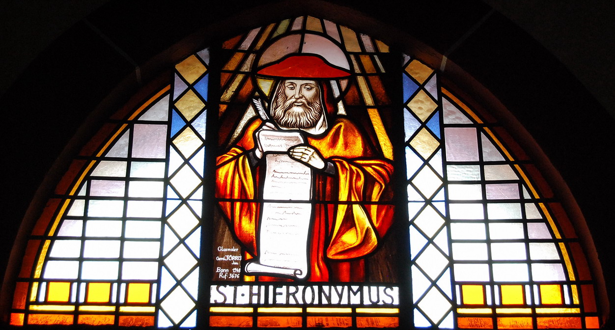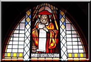 In der Turmhalle befindet sich ein Buntglasfenster, das den Hl. Hieronymus mit Schriftrolle zeigt, er gab als Patron der Pfarrkirche seinen Namen. Der Turmraum dient auch als Gedächtnisstätte für die Opfer beider Weltkriege. Ein großes Holzkreuz mit Jesusstatue befindet sich an der Nordseite, während an der Südseite eine Muttergottesstatue ihren Platz fand.