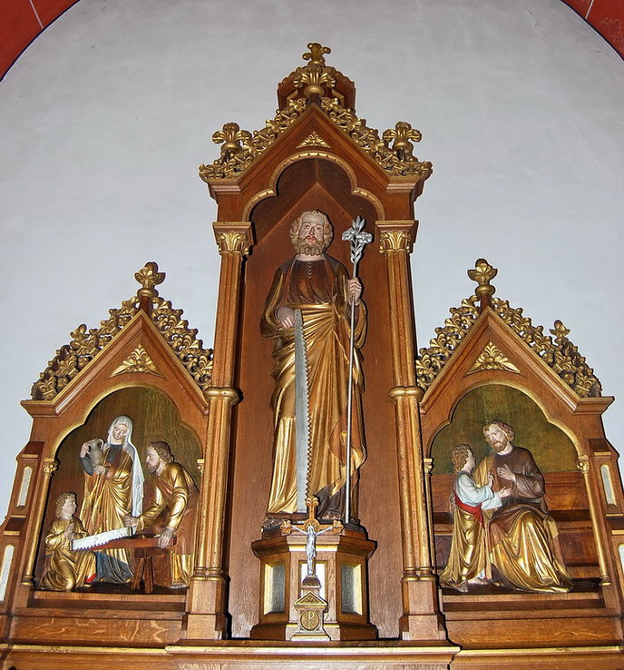 - der Josefsaltar auf der rechten Seite, jeweils mit Darstellungen aus der biblischen Geschichte