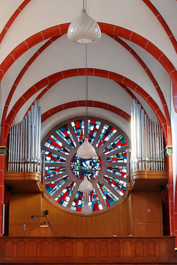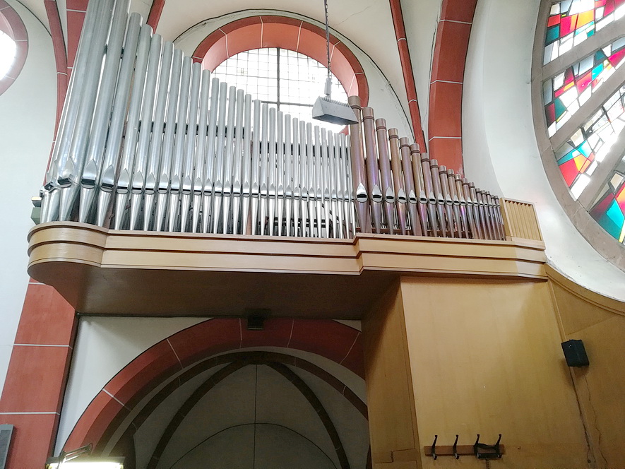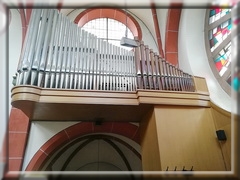- die Orgel, die das mächtige Rundfenster umrahmt