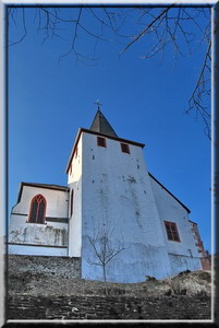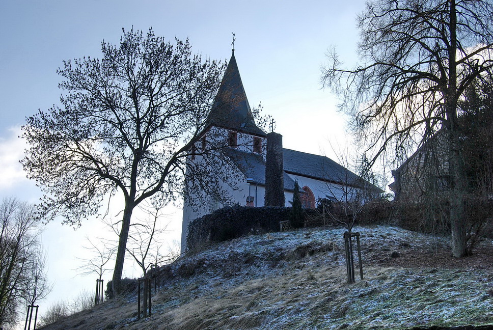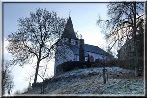Erbaut wurde die 2-schiffige,spätgotische Einstützenkirche auf einer Länge von 13m und einer Breite von 9m durch Gräfin Mathilde von Virneburg. Auf Geheiß ihres Mannes, dem Grafen Kuno von Manderscheid und Schleiden, der im Jahre 1489 verstarb, begann der Bau der Kirche im Jahre 1492 und dauerte bis zu ihrer Vollendung im Jahre 1508 ganze 16 Jahre.