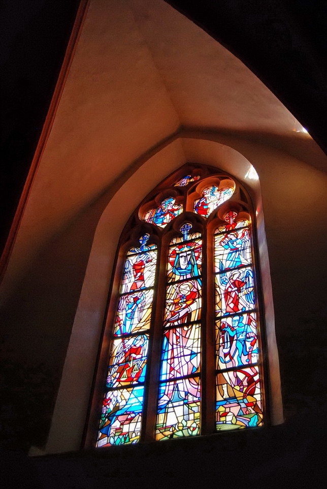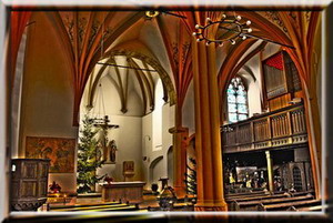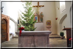 - Der Schlußstein im Chor zeigt die Darstellung des leidenden Christus.