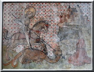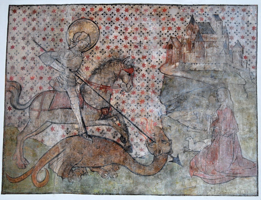 Schon 1899 wurde ebenfalls bei Renovierungsarbeiten die Abbildung des Kampfes Georgs mit dem Drachen wiederentdeckt und befindet sich über dem linken Seitenaltar. Sie wird dem frühen 16. Jahrhundert zugeschrieben. Gut zu sehen ist auch die frühe Darstellung der Kronenburg, die in der oberen rechten Ecke des Wandbildes zu sehen ist.