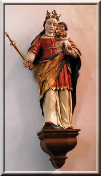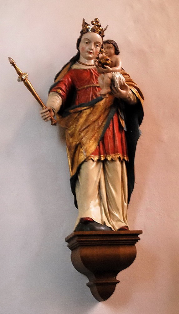 Eine Statue der Muttergottes mit dem Jesuskind stammt aus dem 18. Jahrhundert und befindet sich an der südwestlichen Wand der Kirche.
