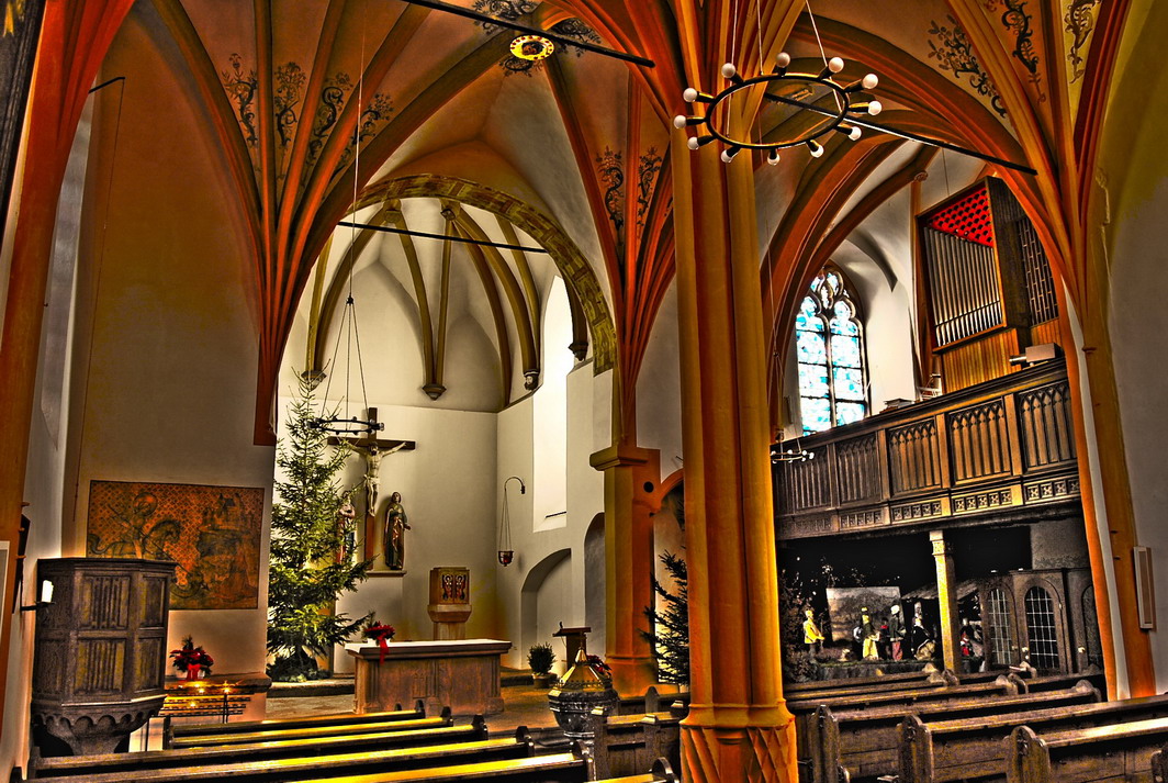 Bauart | Spätgotische, 2-schiffige Einstützenkirche |