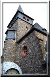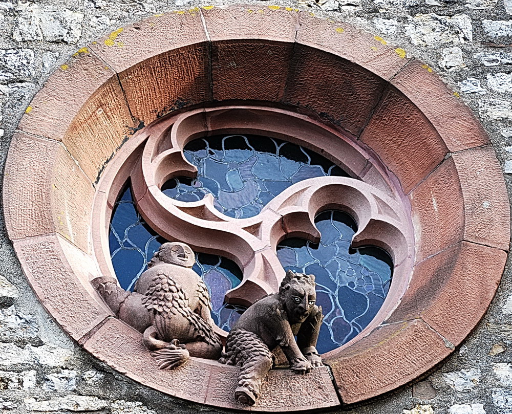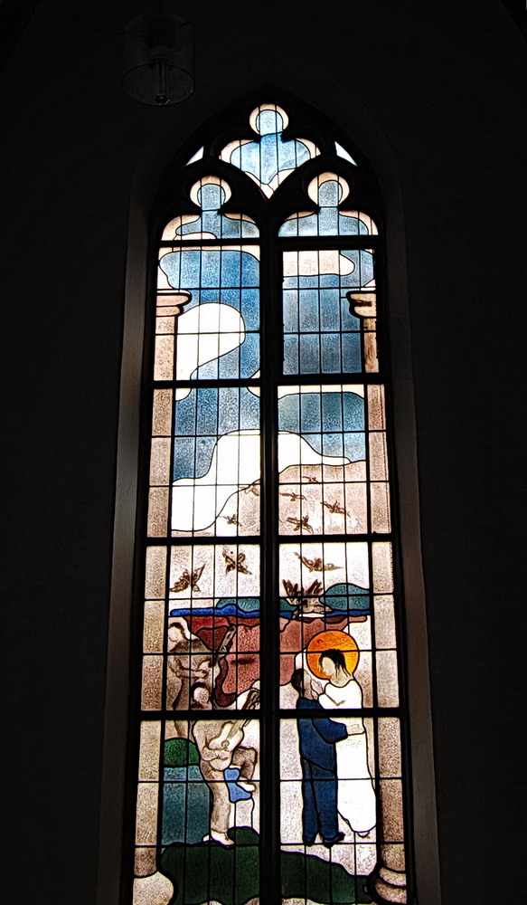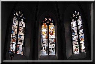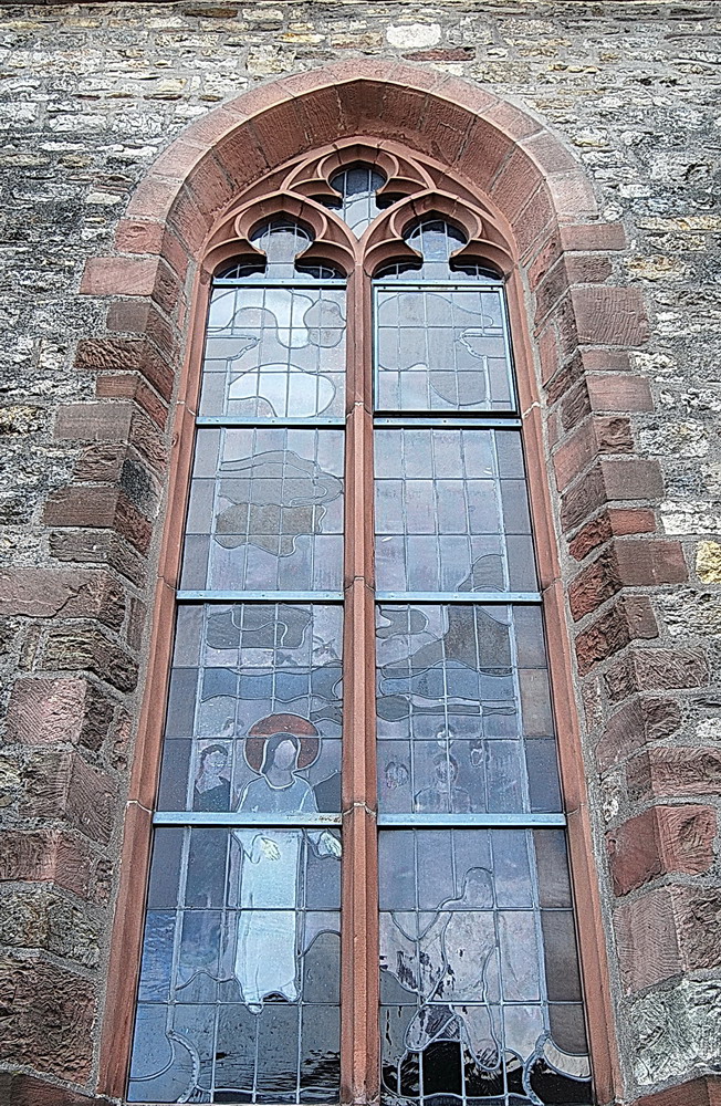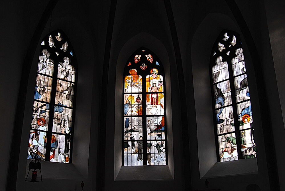 Beeindruckt hat mich auch, dass man die Kirchenfenster nicht nur vom Inneren der Kirche gut betrachten kann, auch von aussen erzählen sie ihre biblische Geschichte und dürften manchen Fußgänger animieren, diese Kunstwerke einer näheren Betrachtung zu unterziehen.