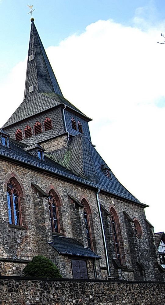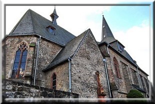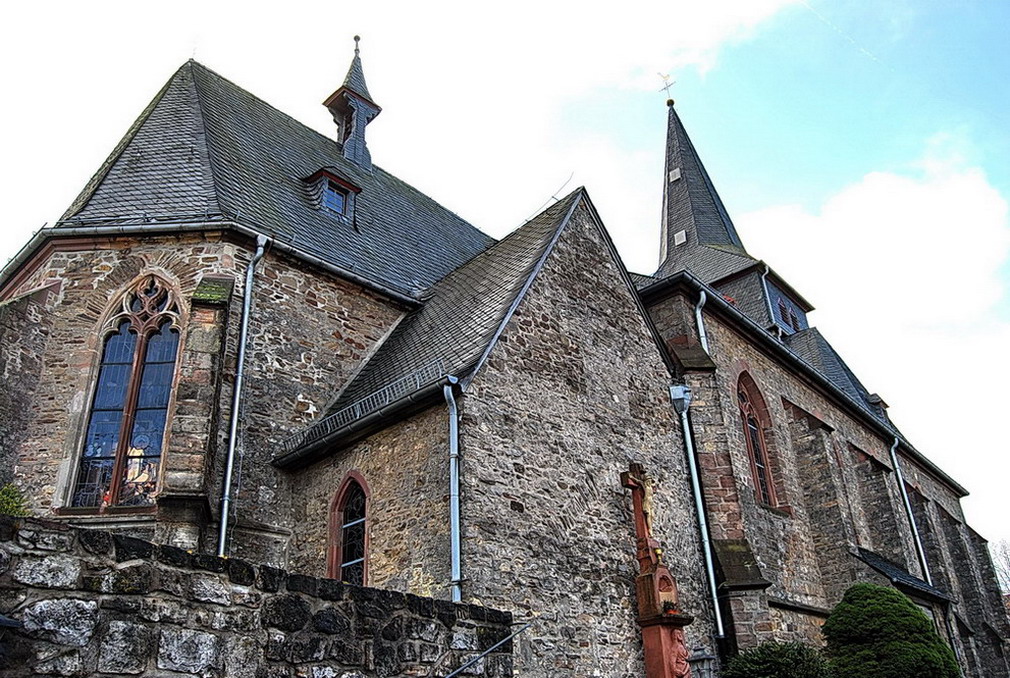 Als ehemals einschiffiger Bau mit Westturm wurde die Kirche nach Plänen des Kölner Architekten Eduard Endler im Jahre 1896 durch Seitenschiffe erweitert.