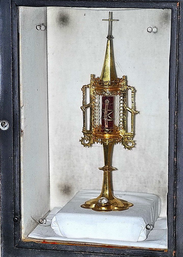 Neben dem Hauptaltar aus dem 14. Jahrhundert ist das wohl älteste Inventar ein Vortragekreuz aus dem 13. Jahrhundert. Es ist aus Holz und 68 cm hoch und mit vergoldetem Kreidegrund überzogen. Die schweren Endigungen zeigen eine Lilienform, die mit Holzperlen und Glasschmuck verziert sind. Hierüber war leider kein Bild vorhanden.
