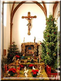 Meine ersten Fotoaufnahmen machte ich in der Weihnachtszeit 2008/2009, sodass ich auch die sehr schöne Krippe bewundern und fotografieren durfte. Wohl aus Sicherheitsgründen fehlte das Jesuskind, was aber der ansonsten ausdrucksstarken Krippe keinen Abbruch tat.