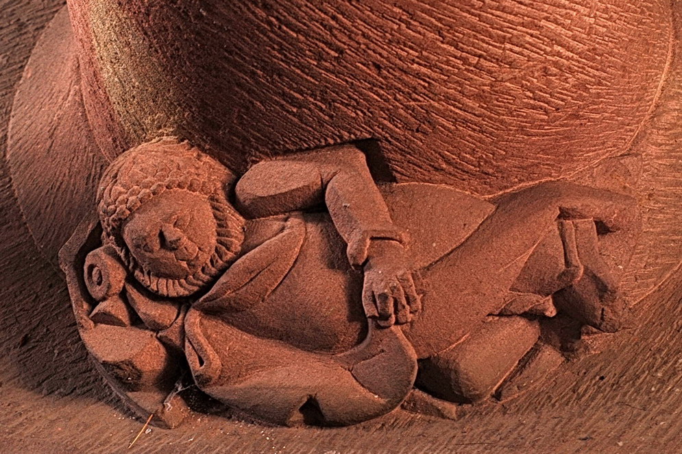 Titus Reinharz aus Vehn bei Sinzig stellte daraufhin den mit blauer Säge und violetten Schuhen ausgestatteten Josef auf eine Sandsteinsäule.