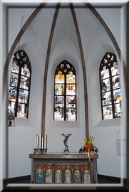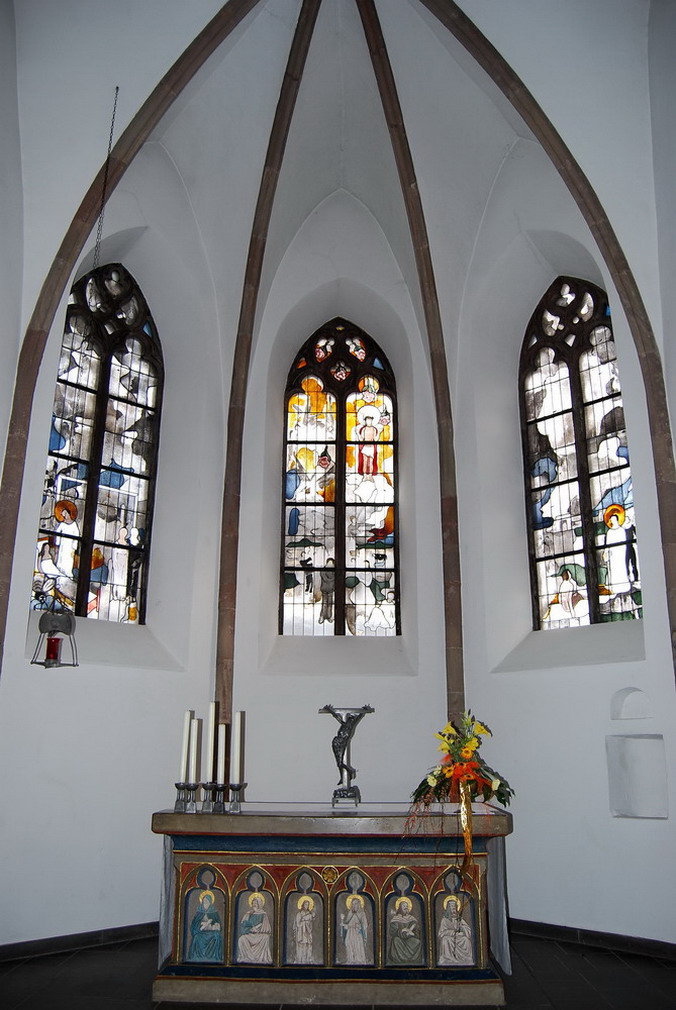 Die Fenster im Chorraum zeigen von links nach rechts: