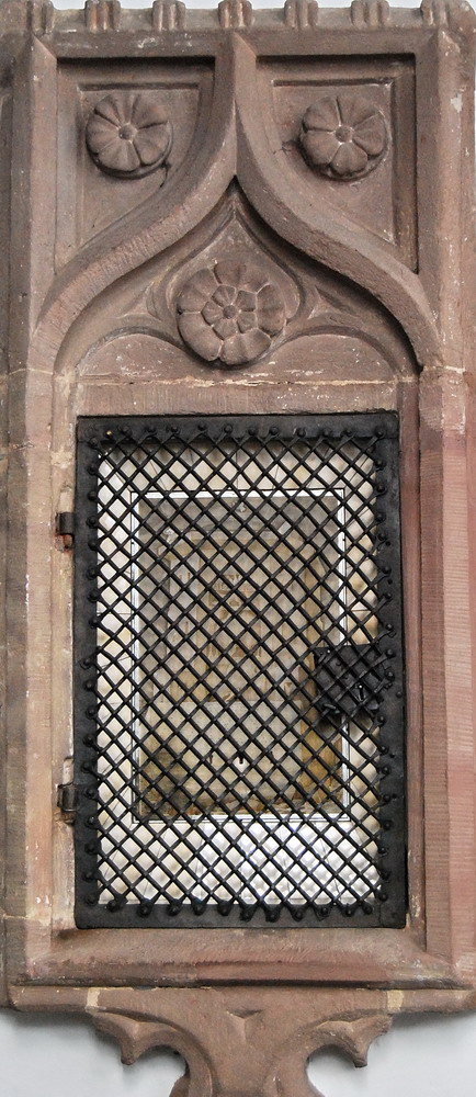 Links neben dem alten Altar ist hinter einem starken Gitter der Tabernakel in die Wand eingelassen, der die geweihten Hostien beinhaltet. Die Taufkapelle zählt als ehemalige Sakristei zu den ältesten Bauelementen der Kirche.