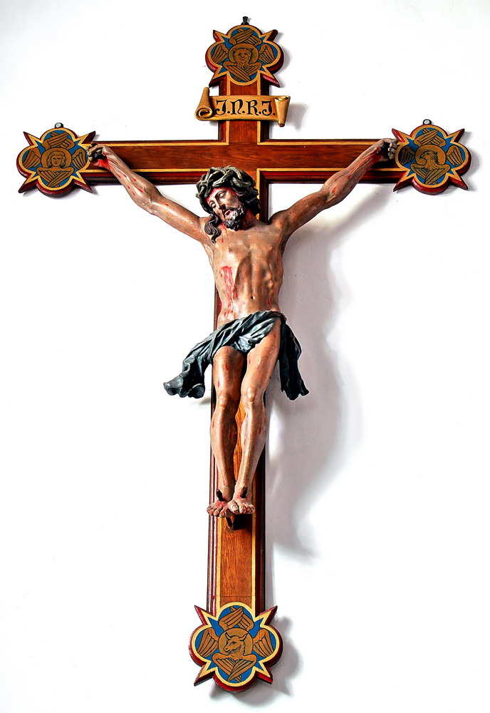 An der Nordseite der Ostwand hängt ein Triumphkreuz aus dem 17. Jahrhundert. Es zeigt den gekreuzigten Jesus mit kräftigem Körper, den Kopf auf die rechte Schulter geneigt und eine schwere Dornenkrone tragend.