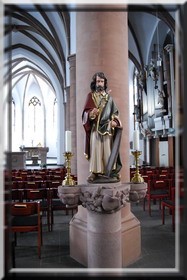 Auf der rechten Seite, ebenfalls vor einem Pfeiler, steht eine Josefsstatue aus Holz, deren Ursprung dem Beginn des 20. Jahrhundert zugeschrieben wird. Die damalige Fassung von dem Kölner Künstler Rudolf Wuttke fand wenig Anklang bei der Bevölkerung.