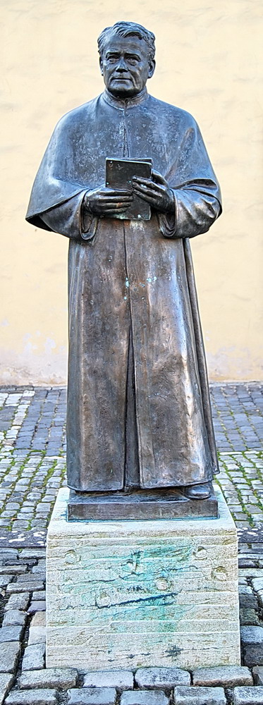 Auf der linken Seite der Anlage steht eine Skulptur des Gründers der Salvatorianer - Pater Franziskus Maria vom Kreuze Jordan -.