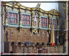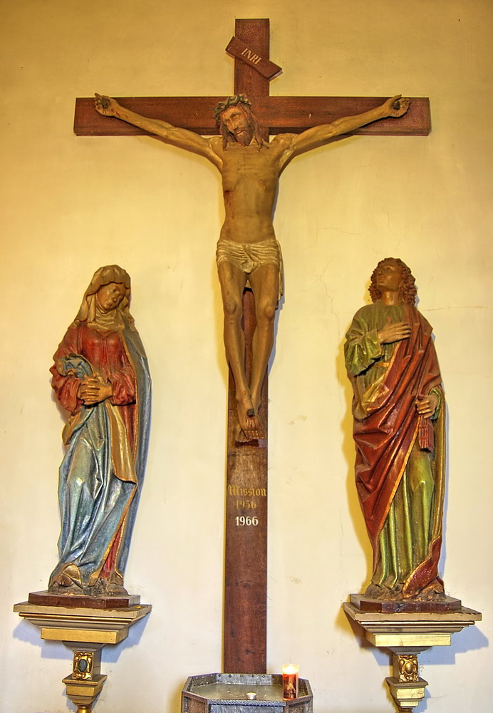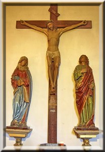 Auf der linken Seite befindet sich eine lebensgroße Kreuzigungsgruppe aus der Zeit um 1500, die 1928 neu gefaßt wurde.