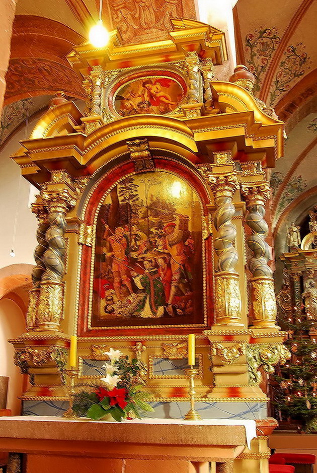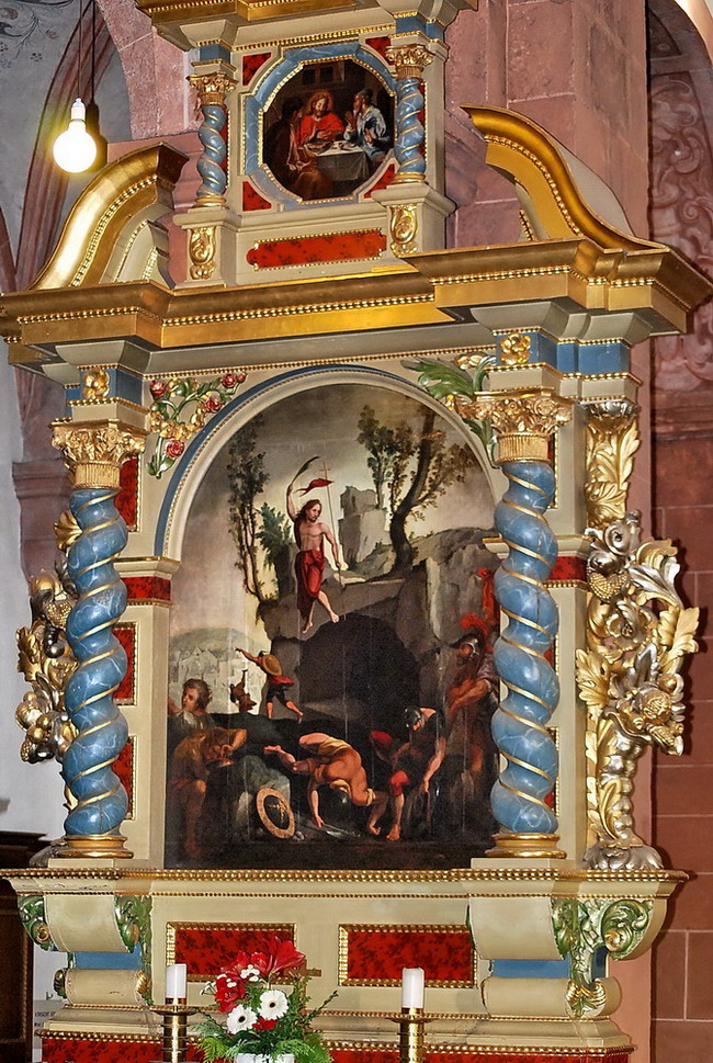 Beim Betreten der Vorhalle fällt zunächst der Blick auf den Magdalenenaltar aus dem Jahre 1720, in dessen Aufbau Christus als Gärtner zu sehen ist.