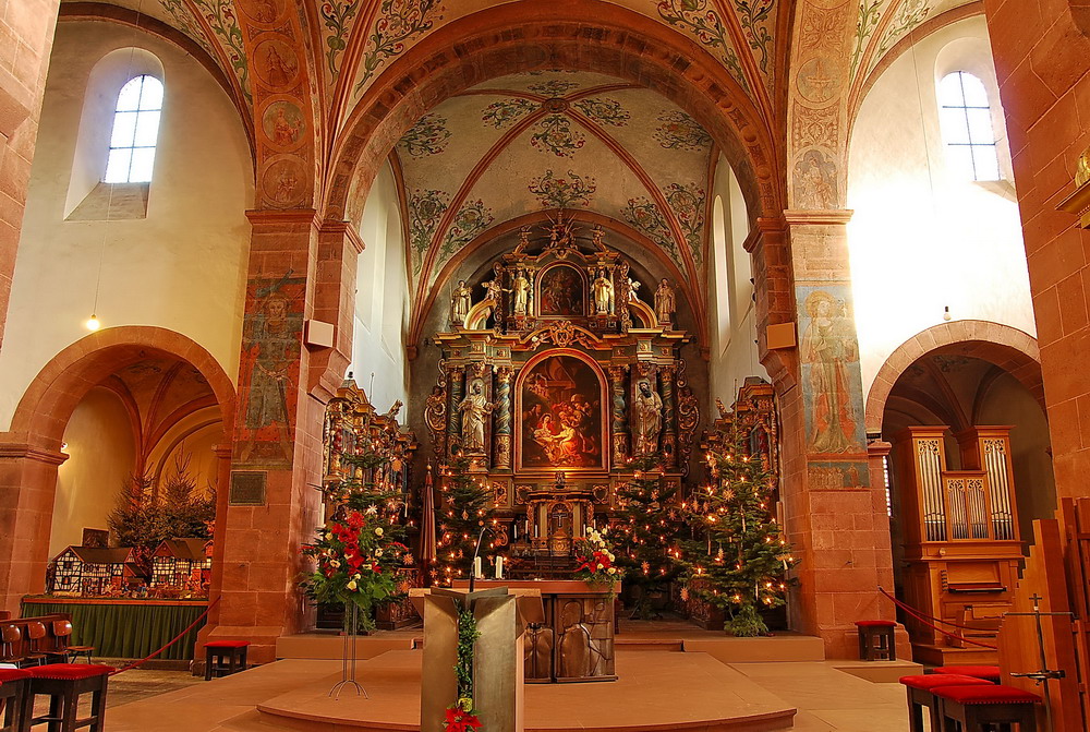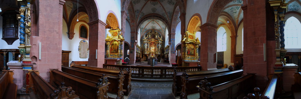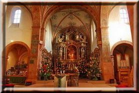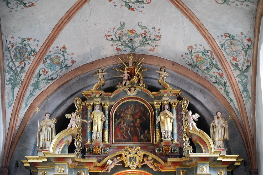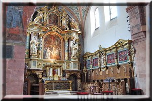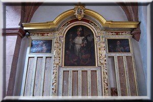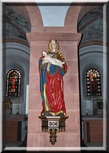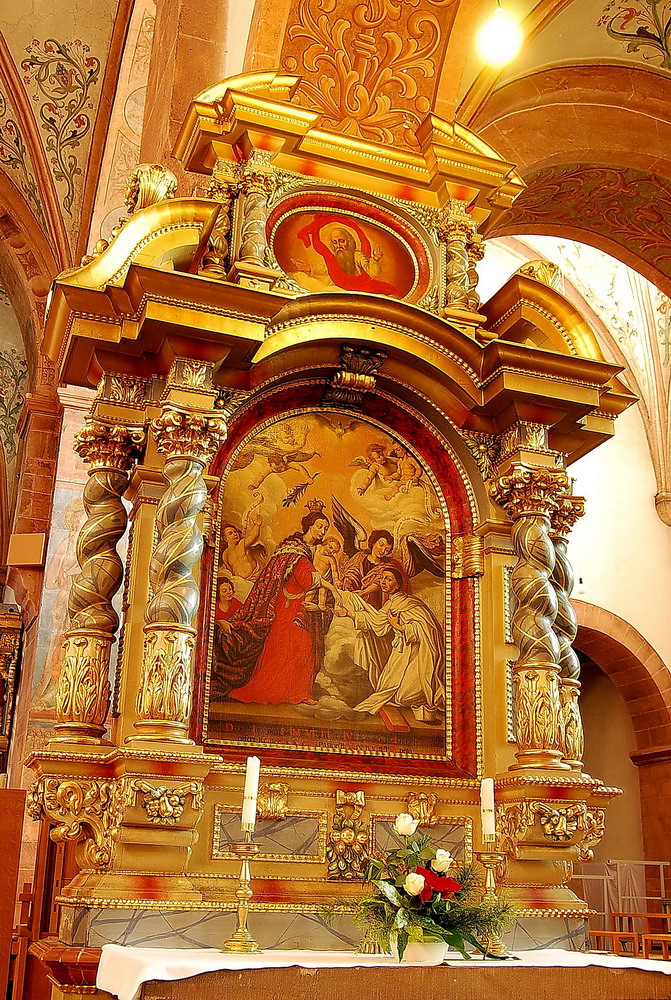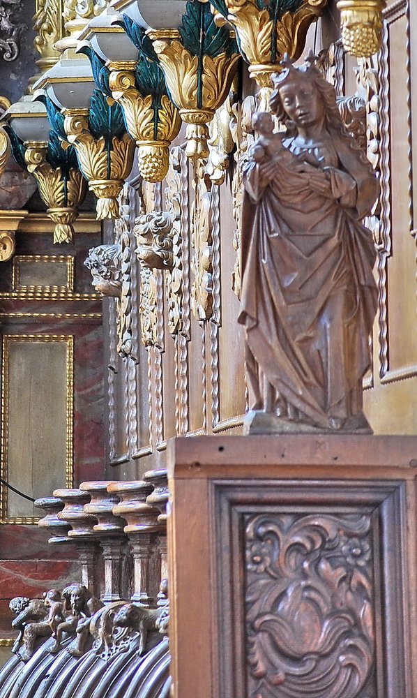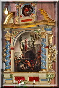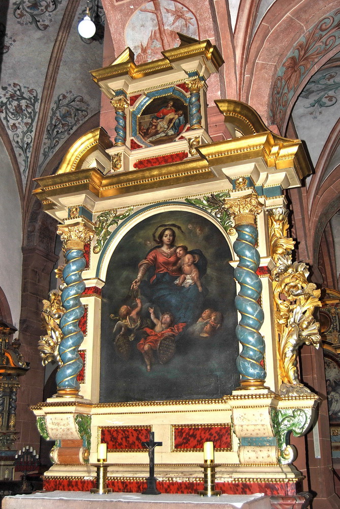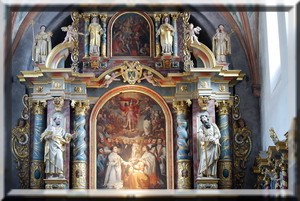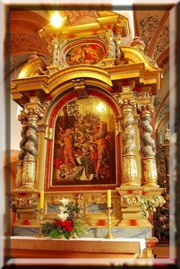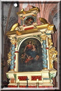 Im hinteren rechten Seitenschiff sehen wir schließlich einen Rosenkranzaltar aus dem Jahre 1702, dessen Ölgemälde die Muttergottes mit dem Jesuskind darstellt.