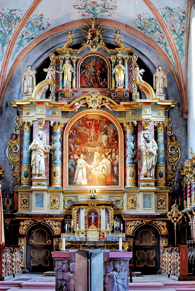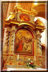 Der zentrale Mittelpunkt des Hochaltars bildet eine große Nische mit einem austauschbaren Ölgemälde.