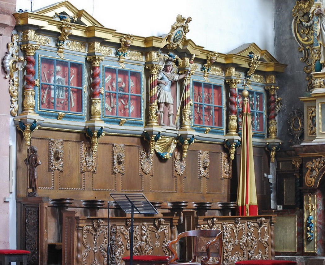 Im Stile des Altars befinden sich links und rechts an den Chorwänden zwei gleichartige Reliquiengehäuse.