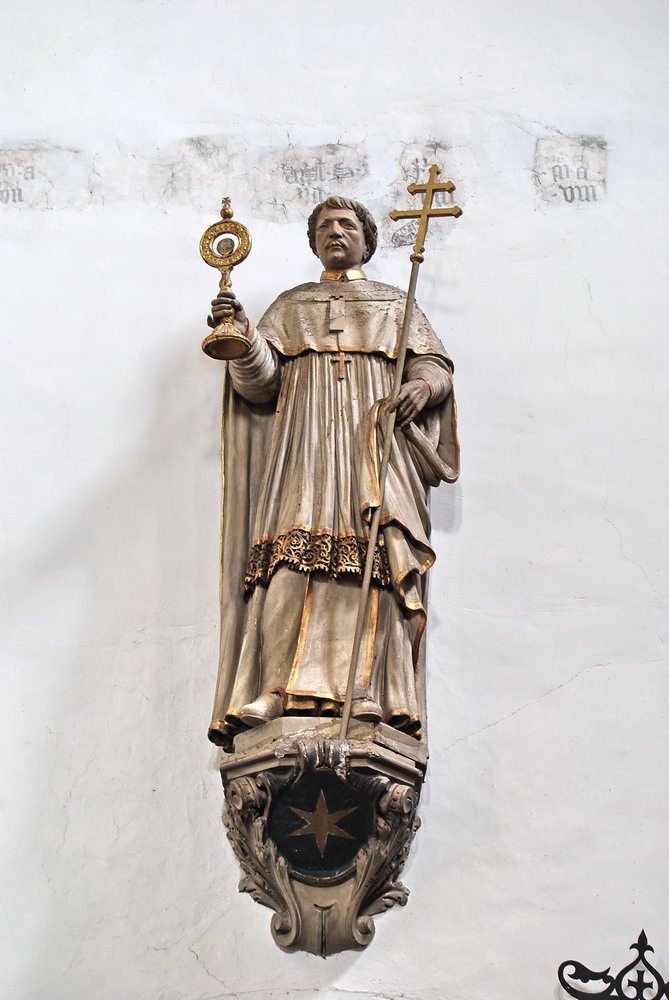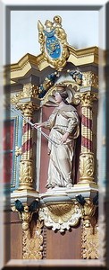 Eine ebenfalls lebensgroße Statue stellt den Hl. Norbert dar, den Begründer des Prämontratenserordens.