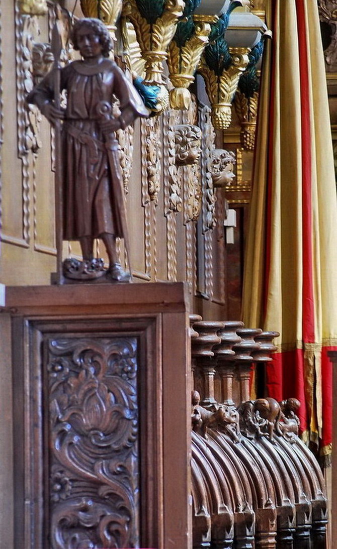 Von dem Chorgestühl befinden sich heute nur noch zwei Bänke mit je sieben Sitzen in der Kirche. Auf den Bankenden steht je eine 77 cm hohe Eichenholzfigur, die auf der linken Seite den Hl. Potentinus und auf der rechten Seite die Muttergottes mit dem Jesuskind darstellen.