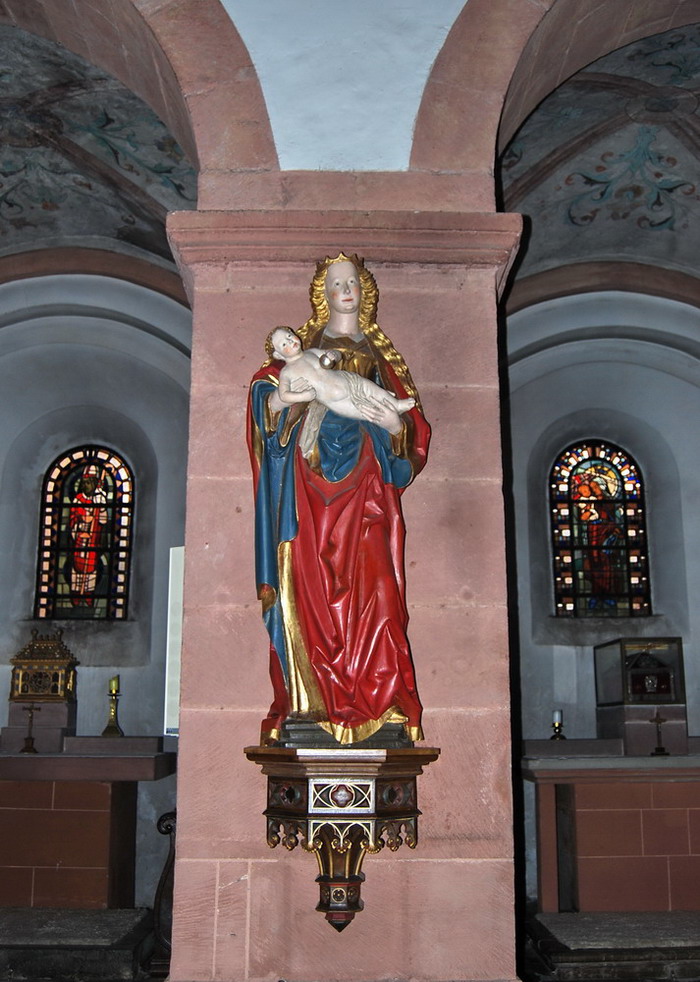 Die Muttergottes mit dem Jesuskind hat eine Größe von 175 cm und entstand in der 2. Hälfte des 15. Jahrhunderts
