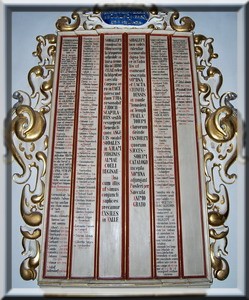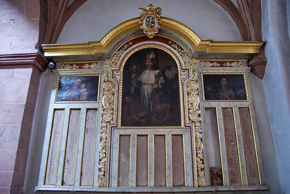 Aus dem 17. Jahrhundert stammt eine Totentafel aus Holz, die in der Breite 270 cm mißt und sich im nördlichen Querschiff befindet. In der Mitte sehen wir ein Bildnis des Hl. Norbert mit dem Allerheiligsten in seiner Rechten, zu seinen Füßen der Antwerpener Ketzer Tauchelm, sowie ein Drache. Links und rechts davon flankieren in separaten Bildern die Heiligen Hermann Joseph und Gottfried von Cappenberg.