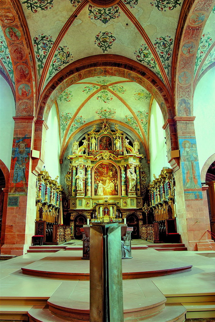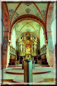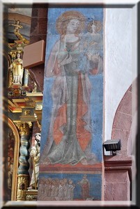 Besonders gut erhaltene Malereien finden wir auf den Chorvierungspfeilen, deren Figuren eine Höhe von 340 cm erreichen.