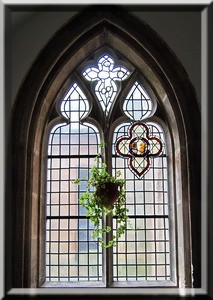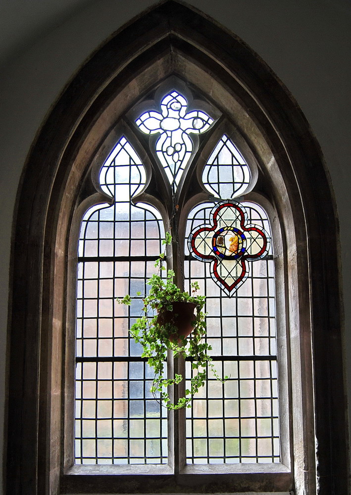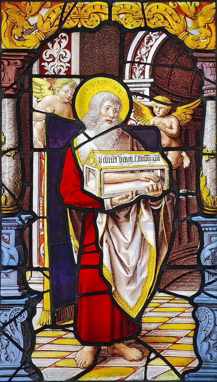 Zum Einen ist es eine Darstellung des Heiligen Apostel Simon, der einen Schrein trägt mit der Aufschrift, dass sich ein Arm des Hl. Simon in dem Schrein befindet. Dieses Fenster kam im Jahre 1973 nach Steinfeld zurück.