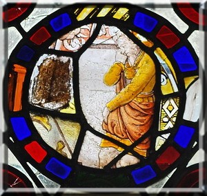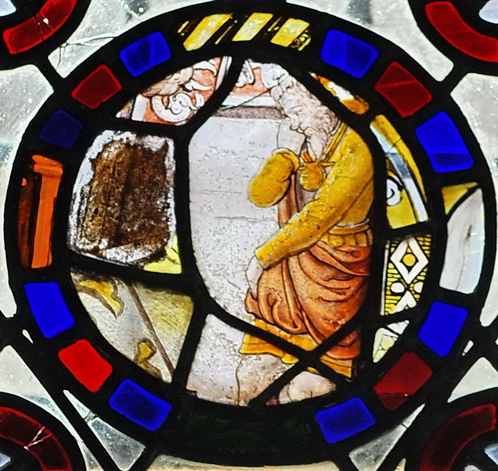 Ein weiteres Teilstück eines der Fenster zeigt einen Bärtigen, dessen Existenz bisher noch nicht zugeordnet werden kann. Diese Scheibe, die vermutlich in einer Pfarrkirche im englischen East Bilney verschollen war, kam im Oktober 1998 zurück nach Steinfeld.