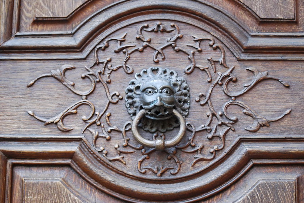 Schließlich befindet sich an der Aussenseite der Türe zur ehemaligen Prälatur (Abtgebäude) ein Türklopfer aus Bronze aus dem 12. Jahrhundert. Der Klopfer hat die Form eines menschenähnlichen Löwenkopfes mit umlaufender Lockenpracht und mißt 15 cm im Durchmesser. Der zugehörige Ring besteht aus einem gedrehten Vierkant von 14 cm Durchmesser.