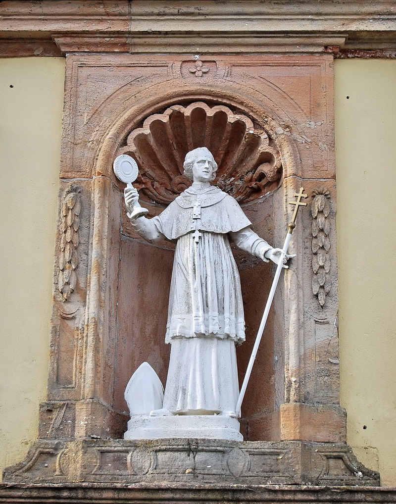 Der 210 cm hohe Hl. Potentinus ist ebenfalls der 2. Hälfte des 15. Jahrhunderts zuzuordnen. Der mit Lanze und Marterwerkzeug bewaffnete Heilige trägt einen Panzer zu seinem Schutz, während ein Schild mit seinem, von drei Lilien geschmückten Wappen, zu seinen Füßen liegt.