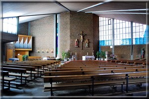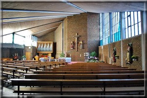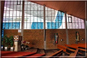 Die heutige moderne Kirche, die über 600 Gläubigen Platz bietet, wurde komplett ohne Pfeiler konstruiert, sodass von jedem Platz aus ein freier Blick auf den Altar erfolgt.