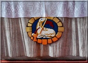 Ein zunächst hängendes Metallkreuz wurde 1984 von dem damaligen Pastor Kröger durch eine Kreuzigungsgruppen hinter dem Altar ersetzt.