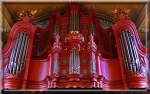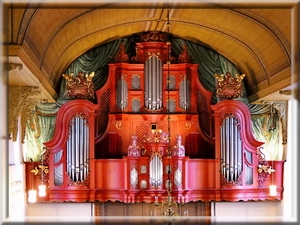 Der gewaltige Vorhang hinter der Orgel, als auch die Orgelbrüstung stammen aus dieser Zeit.