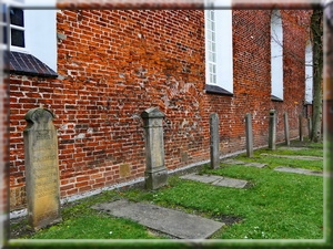 Aussen an der Südwand der Kirchen befinden sich alte Grabplatten der Priester aus der Zeit der Reformation,